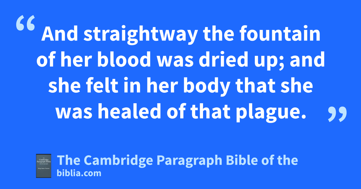 21 lAnd when Jesus was passed over again by ship unto the other side, much people gathered unto him: and he was nigh unto the sea. 22 mAnd behold, there cometh one of nthe rulers of the synagogue, Jairus by name; and when he saw him, he fell at his feet, 23 and besought him greatly, saying, My little daughter lieth at the point of death: I pray thee, come and nnlay thy hands on her, that she may be healed; and she shall live. 24 And Jesus went with him; and much people followed him, and thronged him. 25 And a certain woman, which had an issue of blood twelve years, 26 And had suffered many things of many physicians, and had spent all that she had, and was nothing bettered, but rather grew worse, 27 When she had heard of Jesus, came in the press behind, and touched his garment. 28 For she said, If I may touch but his clothes, I shall be whole. 29 And straightway the fountain of her blood was dried up; and she felt in her body that she was healed of that oplague. 30 And Jesus immediately knowing in himself that pvirtue had gone out of him, turned him about in the press, and said, Who touched my clothes? 31 And his disciples said unto him, Thou seest the multitude thronging thee, and sayest thou, Who touched me? 32 And he looked round about to see her that had done this thing. 33 But the woman fearing and trembling, knowing what was done in her, came and fell down before him, and told him all the truth. 34 And he said unto her, Daughter, thy faith hath made thee whole; go in peace, and be whole of thy oplague. 35 While he yet spake, there came from nthe ruler of the synagogue’s qhouse certain which said, Thy daughter is dead: why troublest thou the Master any further? 36 As soon as Jesus heard the word that was spoken, he saith unto nthe ruler of the synagogue, Be not afraid, rronly believe. 37 And he suffered no man to follow him, save sPeter, and James, and tJohn the brother of James. 38 And he cometh to the house of nthe ruler of the synagogue, and seeth the tumult, and them that wept and wailed greatly. 39 And when he was come in, he saith unto them, Why make ye this ado, and weep? the damsel is not dead, but sleepeth. 40 And they laughed him to scorn. But when he had put them all out, he taketh the father and the mother of the damsel, and uthem that were with him, and entereth in where the damsel was lying. 41 And he took the damsel by the hand, and said unto her, xTalitha cumi; which is, being interpreted, Damsel (yI say unto thee) arise. 42 And straightway the damsel arose, and walked; for she was of the age of twelve years. And they were yyastonished with a great astonishment. 43 And zhe charged them straitly that no man should know it; and commanded that something should be given her to eat.