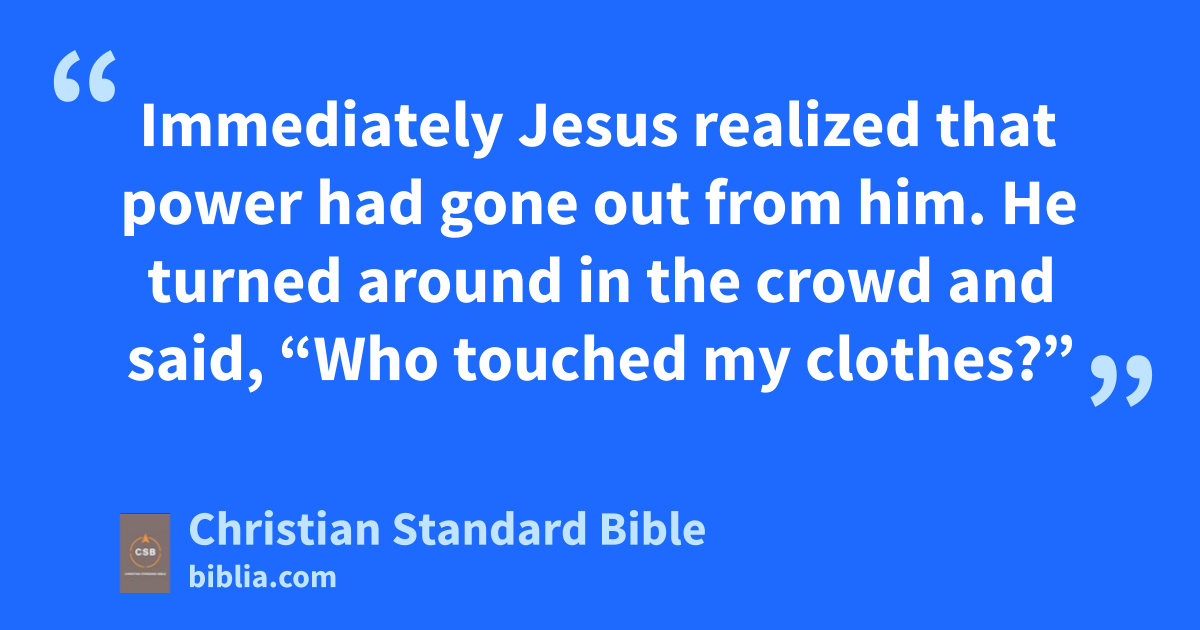 30 Immediately Jesus realized that powers had gone out from him. He turned around in the crowdt and said, “Who touched my clothes?”u