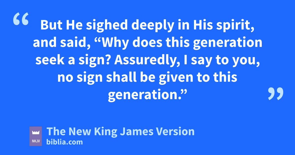 11 fThen the Pharisees came out and began to dispute with Him, seeking from Him a sign from heaven, testing Him. 12 But He gsighed deeply in His spirit, and said, “Why does this generation seek a sign? Assuredly, I say to you, hno sign shall be given to this generation.”