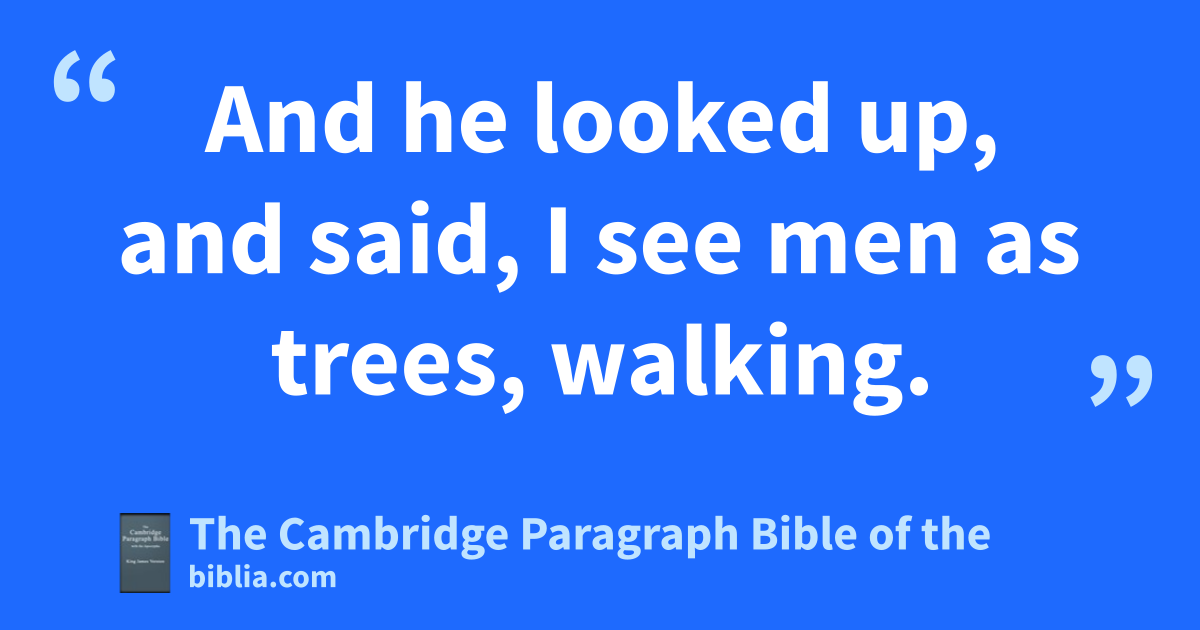 22 And he cometh to nBethsaida; and they bring a blind man unto him, and besought him oto touch him. 23 And he ptook the blind man by the hand, and led him out of the town; and when he had qspit on his eyes, and oput his hands upon him, he asked him if he saw ought. 24 And he looked up, and said, I see men as trees, walking. 25 After that he qqput his hands again upon his eyes, and made him look up: and he was restored, and saw every man clearly. 26 And he sent him away to his house, saying, Neither go rinto the town, snor tell it to any in the town.