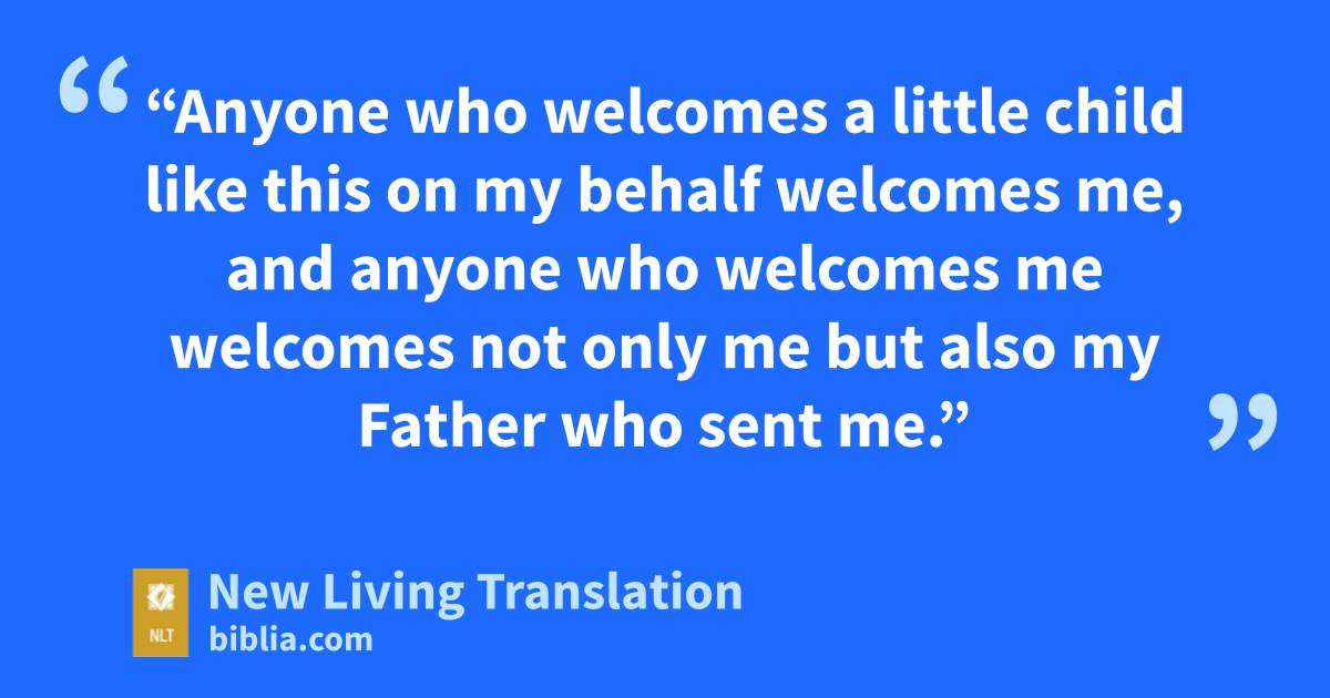 36 Then he put a little child among them. Taking the child in his arms, he said to them, 37 “Anyone who welcomes a little child like this on my behalf* welcomes me, and anyone who welcomes me welcomes not only me but also my Father who sent me.”