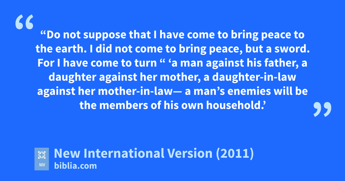 34 “Do not suppose that I have come to bring peace to the earth. I did not come to bring peace, but a sword. 35 For I have come to turn