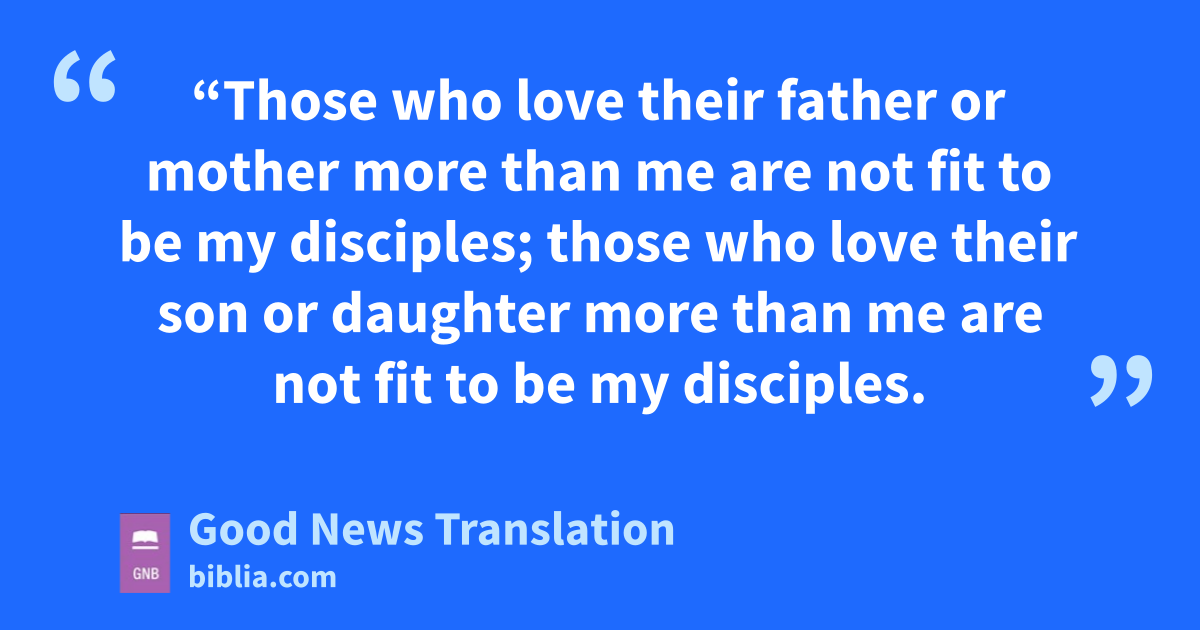 37 “Those who love their father or mother more than me are not fit to be my disciples; those who love their son or daughter more than me are not fit to be my disciples. 38*Those who do not take up their cross and follow in my steps are not fit to be my disciples. 39*Those who try to gain their own life will lose it; but those who lose their life for my sake will gain it.