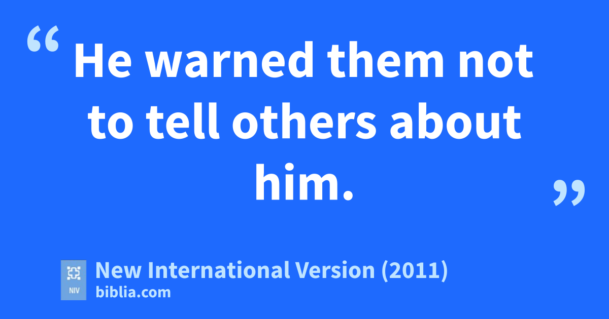 15 Aware of this, Jesus withdrew from that place. A large crowd followed him, and he healed all who were ill.k 16 He warned them not to tell others about him.l 17 This was to fulfillm what was spoken through the prophet Isaiah: