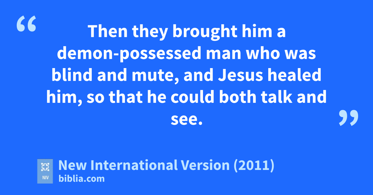 22 Then they brought him a demon-possessed man who was blind and mute, and Jesus healed him, so that he could both talk and see.q 23 All the people were astonished and said, “Could this be the Son of David?”r