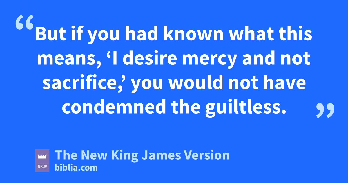 3 But He said to them, “Have you not read cwhat David did when he was hungry, he and those who were with him: 4 how he entered the house of God and ate dthe showbread which was not lawful for him to eat, nor for those who were with him, ebut only for the priests? 5 Or have you not read in the flaw that on the Sabbath the priests in the temple 1profane the Sabbath, and are blameless? 6 Yet I say to you that in this place there is gOne greater than the temple. 7 But if you had known what this means, h‘I desire mercy and not sacrifice,’ you would not have condemned the guiltless. 8 For the Son of Man is Lord 2even of the Sabbath.”