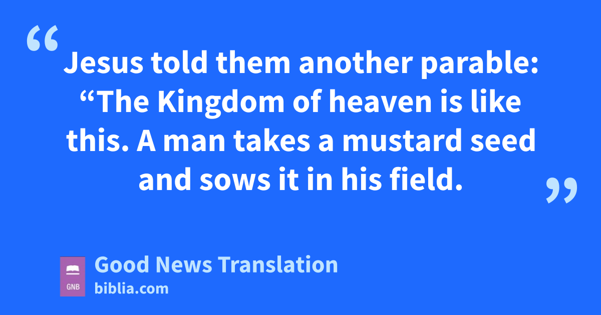 31 Jesus told them another parable: “The Kingdom of heaven is like this. A man takes a mustard seed and sows it in his field. 32It is the smallest of all seeds, but when it grows up, it is the biggest of all plants. It becomes a tree, so that birds come and make their nests in its branches.”