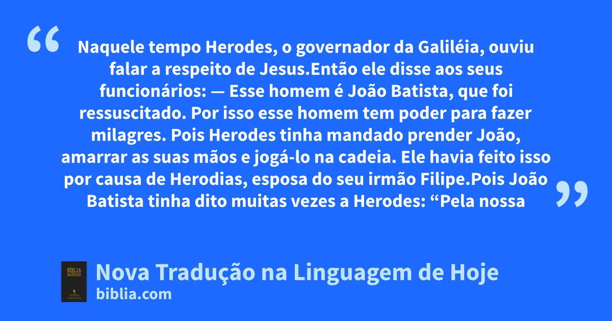 1 Naquele tempo Herodes, o governador da Galiléia, ouviu falar a respeito de Jesus. 2 Então ele disse aos seus funcionários: