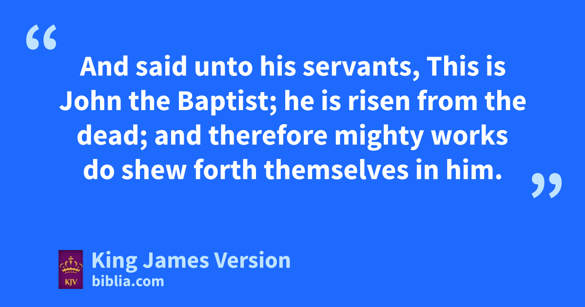 14 *At that time aHerod bthe tetrarch heard of the fame of Jesus, 2 And said unto his cservants, This is John the Baptist; he is risen from the dead; and therefore dmighty works ||do shew forth themselves in him. 3 For Herod *ehad laid hold on John, and bound him, and put him in prison for Herodias’ sake, fhis brother Philip’s wife. 4 For John said unto him, gIt is not lawful for thee to have her. 5 And when he would have put him to death, hhe feared the multitude, because they counted him as ia prophet. 6 But when Herod’s birthday was kept, the daughter of Herodias danced †before them, and pleased Herod. 7 Whereupon he promised with an oath to give her whatsoever she would ask. 8 And she, being kbefore instructed of her mother, said, Give me here John Baptist’s head in a lcharger. 9 And the king was sorry: nevertheless for the oath’s sake, and them which sat with him at meat, he commanded it to be given her. 10 And he sent, and beheaded John in the prison. 11 And his head was brought in a lcharger, and given to the damsel: and she brought it to her mother. 12 And his disciples came, and took up the body, and buried it, and went and told Jesus.