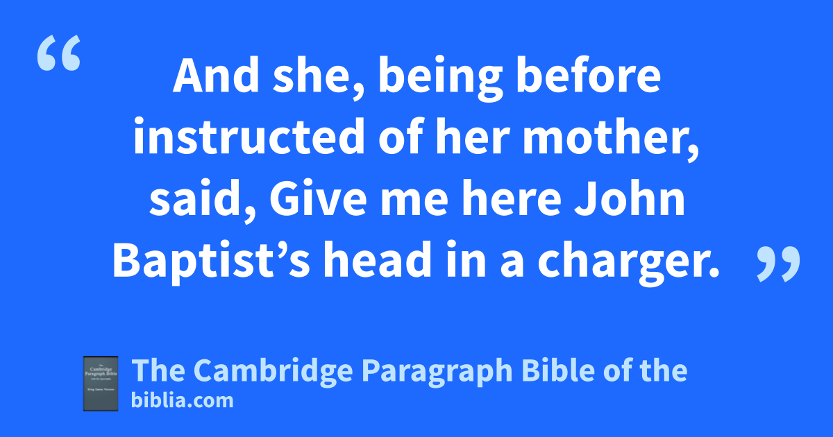 XIV. * At that time aHerod bthe tetrarch heard of the fame of Jesus, 2 and said unto his cservants, This is John the Baptist; he is risen from the dead; and therefore dmighty works * do shew forth themselves in him. 3 For Herod * ehad laid hold on John, and bound him, and put him in prison for Herodias’ sake, fhis brother Philip’s wife. 4 For John said unto him, gIt is not lawful for thee to have her. 5 And when he would have put him to death, hhe feared the multitude, because they counted him as ia prophet. 6 But when Herod’s birthday was kept, the daughter of Herodias danced * before them, and pleased Herod. 7 Whereupon he promised with an oath to give her whatsoever she would ask. 8 And she, being kbefore instructed of her mother, said, Give me here John Baptist’s head in a lcharger. 9 And the king was sorry: nevertheless for the oaths’ sake, and them which sat with him at meat, he commanded it to be given her. 10 And he sent, and beheaded John in the prison. 11 And his head was brought in a lcharger, and given to the damsel: and she brought it to her mother. 12 And his disciples came, and took up the body, and buried it, and went and told Jesus.