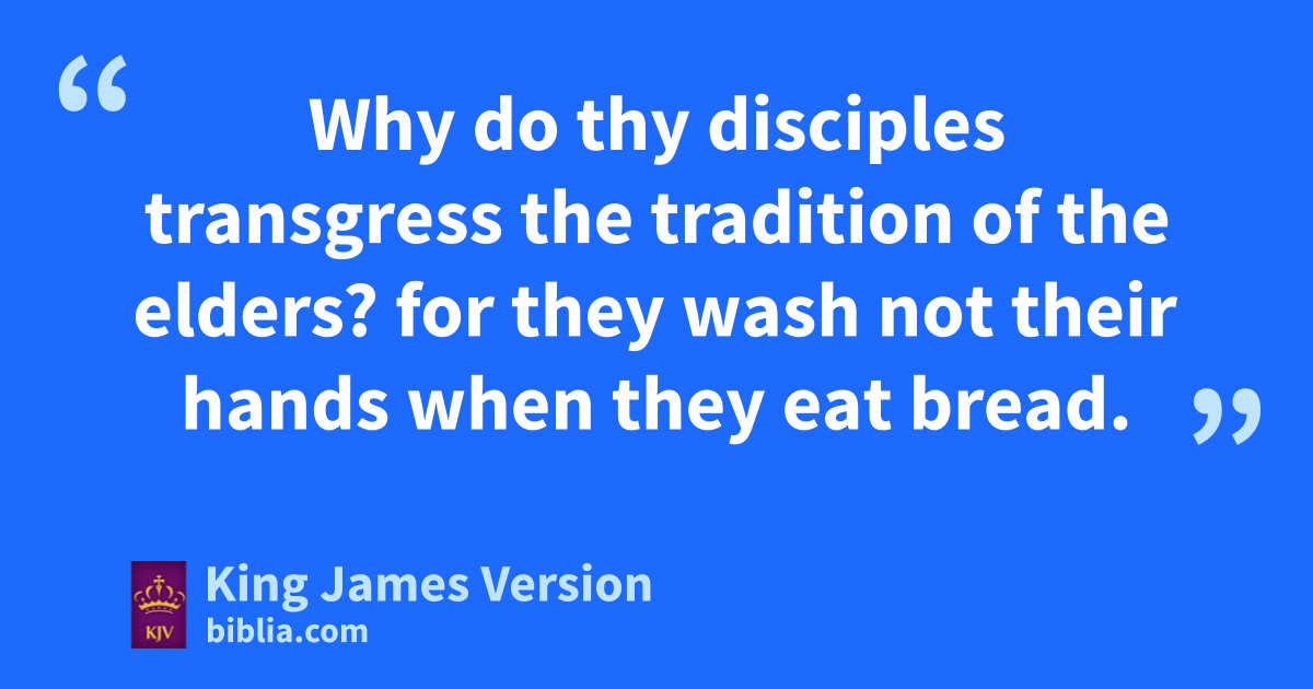 15 Then acame to Jesus scribes and Pharisees, which were of Jerusalem, saying, 2 Why do thy disciples transgress bthe tradition of cthe elders? for they wash not their hands when they eat bread. 3 But he answered and said unto them, Why do ye also transgress the commandment of God by your tradition? 4 For God commanded, saying, dHonour thy father and mother: and, eHe that curseth father or mother, let him die the death. 5 But ye say, Whosoever shall say to his father or his mother, It is fa gift, by whatsoever thou mightest be profited by me; 6 And honour not his father or his mother, he shall be free. Thus ghave ye made the commandment of God gof none effect by your tradition. 7 Ye hypocrites, well did Esaias prophesy of you, saying, 8 hThis people draweth nigh unto me with their mouth, and honoureth me with their lips; but their heart is far from me. 9 But in vain they do worship me, teaching for idoctrines the commandments of men.