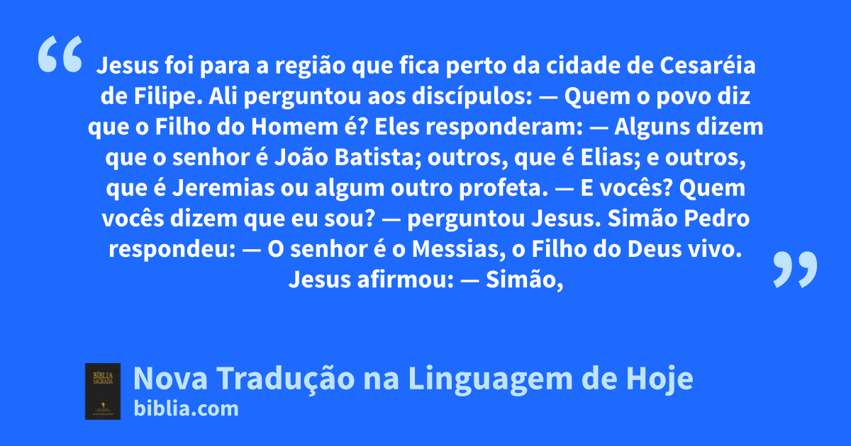 13 Jesus foi para a região que fica perto da cidade de Cesaréia de Filipe. Ali perguntou aos discípulos: