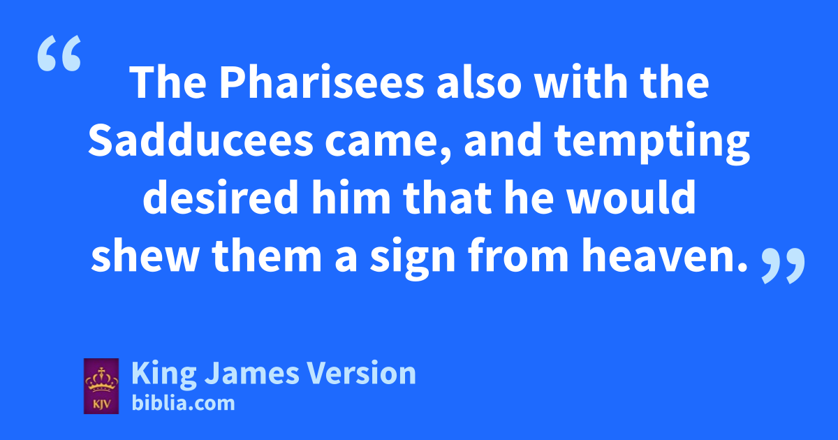 16 The aPharisees also with the aaSadducees came, and tempting desired him that he would shew them a sign from heaven. 2 He answered and said unto them, bWhen it is evening, ye say, It will be cfair weather: for the sky is red. 3 And in the morning, It will be foul weather to day: for the sky is red and lowring. dO ye hypocrites, ye can discern the face of the sky; but can ye not discern the signs of the times? 4 eA wicked and adulterous generation seeketh after a sign; and there shall no sign be given unto it, but the sign of the prophet Jonas. And he left them, and departed.