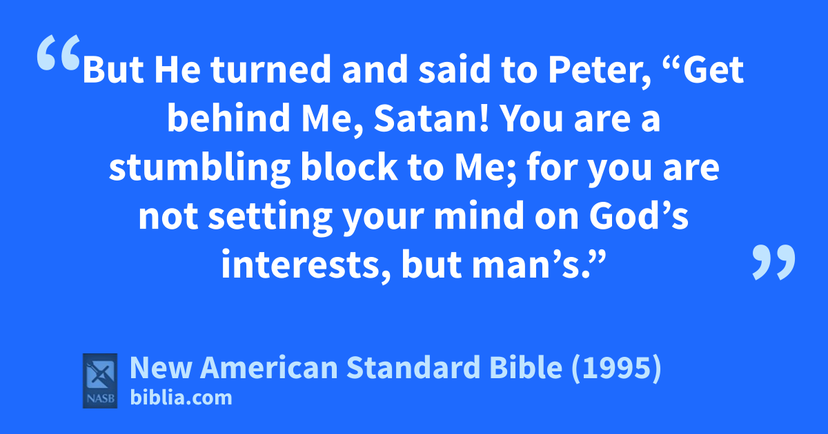 23 But He turned and said to Peter, “Get behind Me, aSatan! You are a stumbling block to Me; for you are not setting your mind on 1God’s interests, but man’s.”