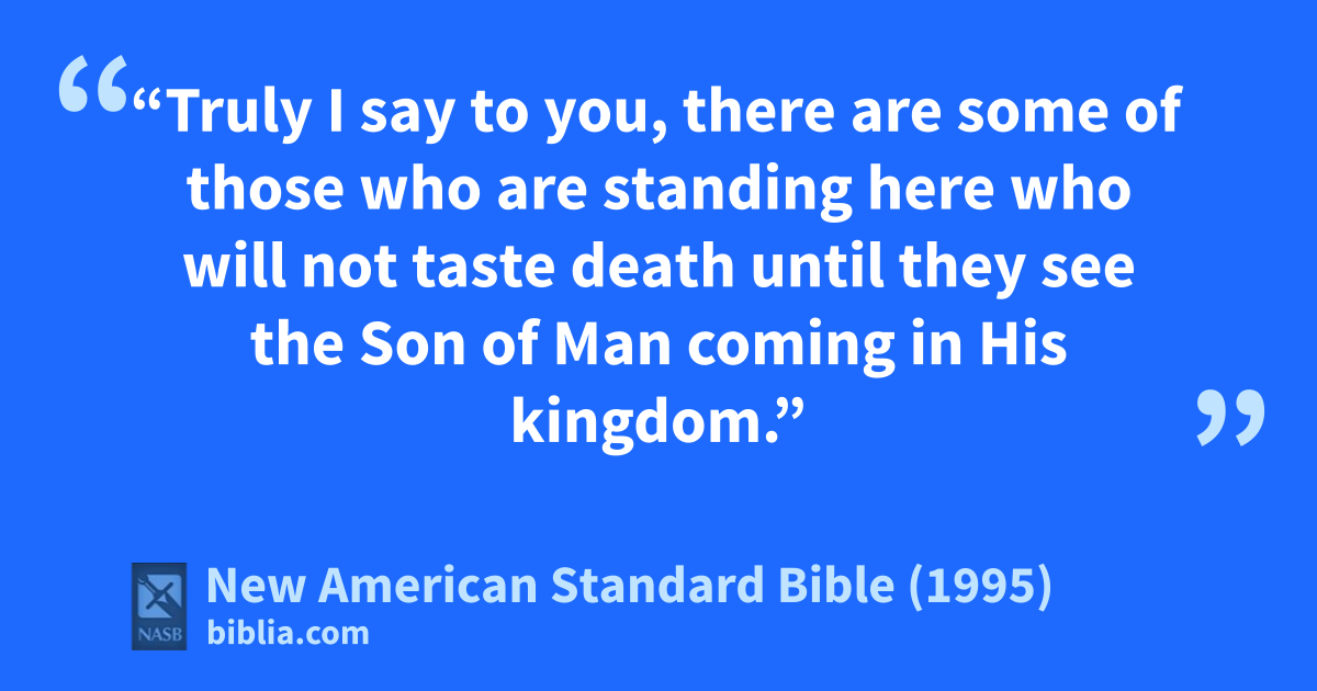 28 “Truly I say to you, there are some of those who are standing here who will not taste death until they see the aSon of Man bcoming in His kingdom.”