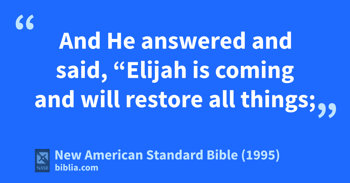 11 And He answered and said, “Elijah is coming and will restore all things;