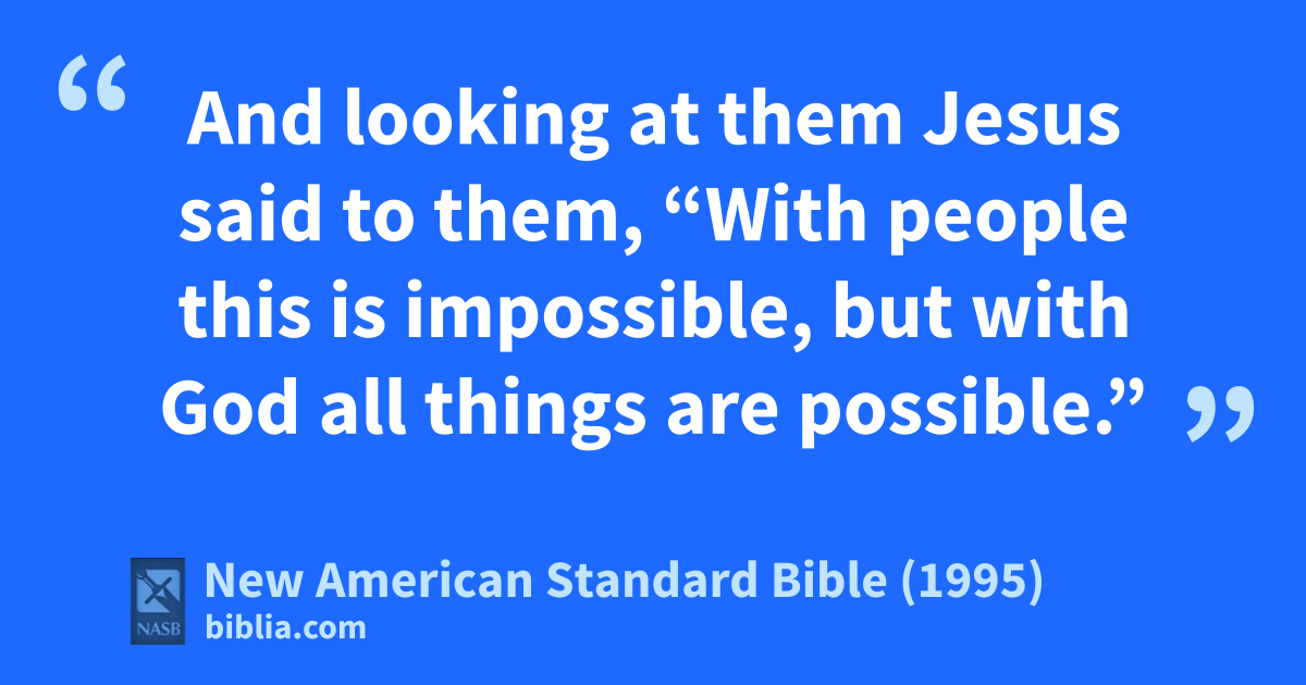 26 And looking at them Jesus said to them, “aWith people this is impossible, but with God all things are possible.”