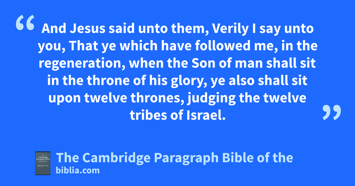 27 Then answered Peter and said unto him, Behold, we have mforsaken all, and followed thee; what shall we have therefore? 28 And Jesus said unto them, Verily I say unto you, That ye which have followed me, in the nregeneration, when the Son of man shall sit in the throne of his glory, oye also shall sit upon twelve thrones, opjudging the twelve tribes of Israel. 29 And every one that hath mforsaken houses, or brethren, or sisters, or father, or mother, or wife, or children, or lands, for my name’s sake, shall receive an hundredfold, and shall inherit everlasting life. 30 But many that are qfirst shall be last; and the rlast shall be first.