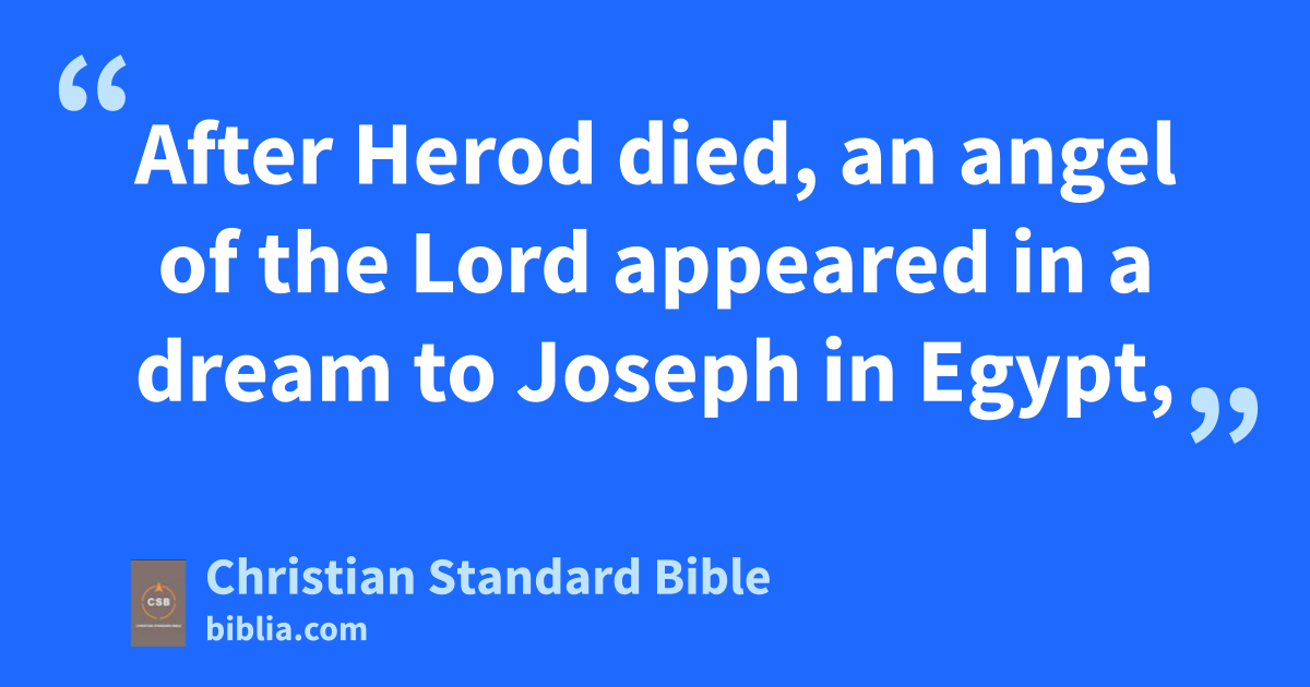 13 After they were gone, an angel of the Lord appeared to Joseph in a dream, saying, “Get up! Take the child and his mother, flee to Egypt, and stay there until I tell you. For Herod is about to search for the child to kill him.”i 14 So he got up, took the child and his mother during the night, and escaped to Egypt. 15 He stayed there until Herod’s death, so that what was spoken by the Lord through the prophet might be fulfilled: Out of Egypt I called my Son.A,j