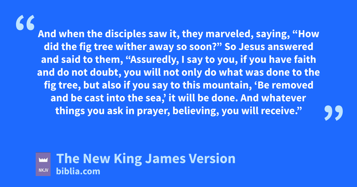 21 So Jesus answered and said to them, “Assuredly, I say to you, tif you have faith and udo not doubt, you will not only do what was done to the fig tree, vbut also if you say to this mountain, ‘Be removed and be cast into the sea,’ it will be done. 22 And wwhatever things you ask in prayer, believing, you will receive.”