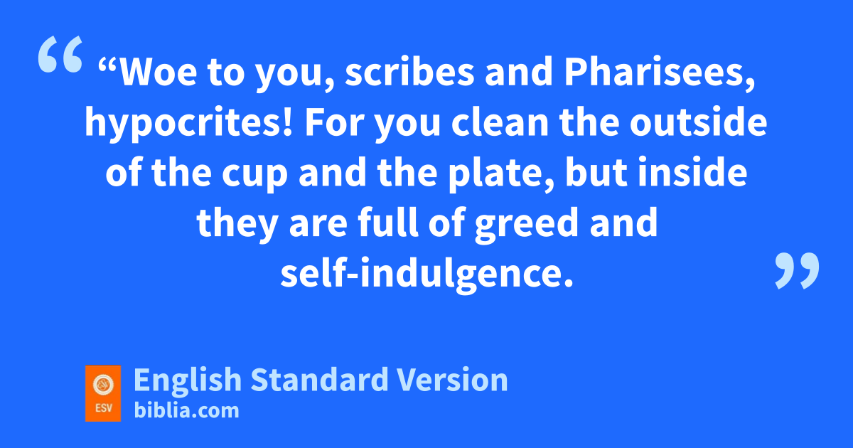 25 j“Woe to you, scribes and Pharisees, hypocrites! For kyou clean the outside of lthe cup and the plate, but inside they are full of mgreed and self-indulgence. 26 You blind Pharisee! First clean the inside of lthe cup and the plate, that the outside also may be clean.