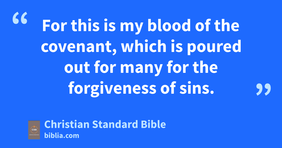 26 As they were eating,s Jesus took bread, blessed and broke it, gave it to the disciples,t and said, “Take and eat it; this is my body.”u 27 Then he took a cup, and after giving thanks, he gave it to them and said, “Drink from it, all of you. 28 For this is my blood of the covenant,B which is poured out for many for the forgiveness of sins.v 29 But I tell you, I will not drink from this fruit of the vine from now on until that day when I drink it new with you in my Father’s kingdom.”w 30 After singing a hymn, they went out to the Mount of Olives.x