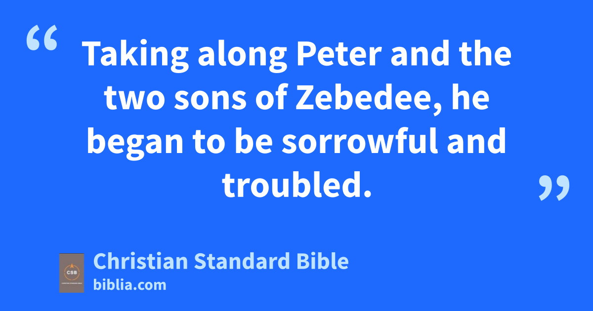 36 Then Jesus came with them to a place called Gethsemane,ab and he told the disciples, “Sit here while I go over there and pray.” 37 Taking along Peter and the two sons of Zebedee, he began to be sorrowful and troubled.a 38 He said to them, “I am deeply grievedD to the point of death. Remain here and stay awake with me.”b 39 Going a little farther,A he fell facedown and prayed, “My Father, if it is possible, let this cup pass from me. Yet not as I will, but as you will.”c