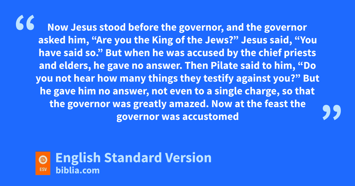 11 lNow Jesus stood before the governor, and the governor asked him, “Are you mthe King of the Jews?” Jesus said, n“You have said so.” 12 oBut when he was accused by the chief priests and elders, he gave no answer. 13 Then Pilate said to him, p“Do you not hear how many things they testify against you?” 14 But he gave him no answer, not even to a single charge, so that the governor was greatly amazed.