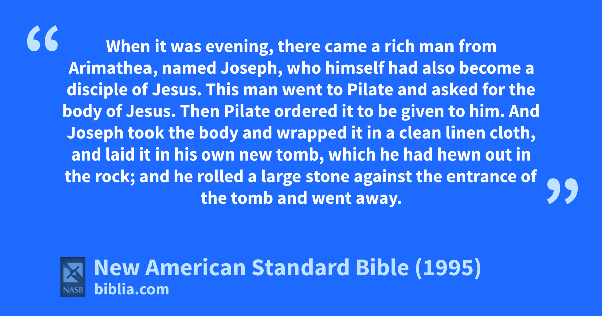 57 aWhen it was evening, there came a rich man from Arimathea, named Joseph, who himself had also become a disciple of Jesus.