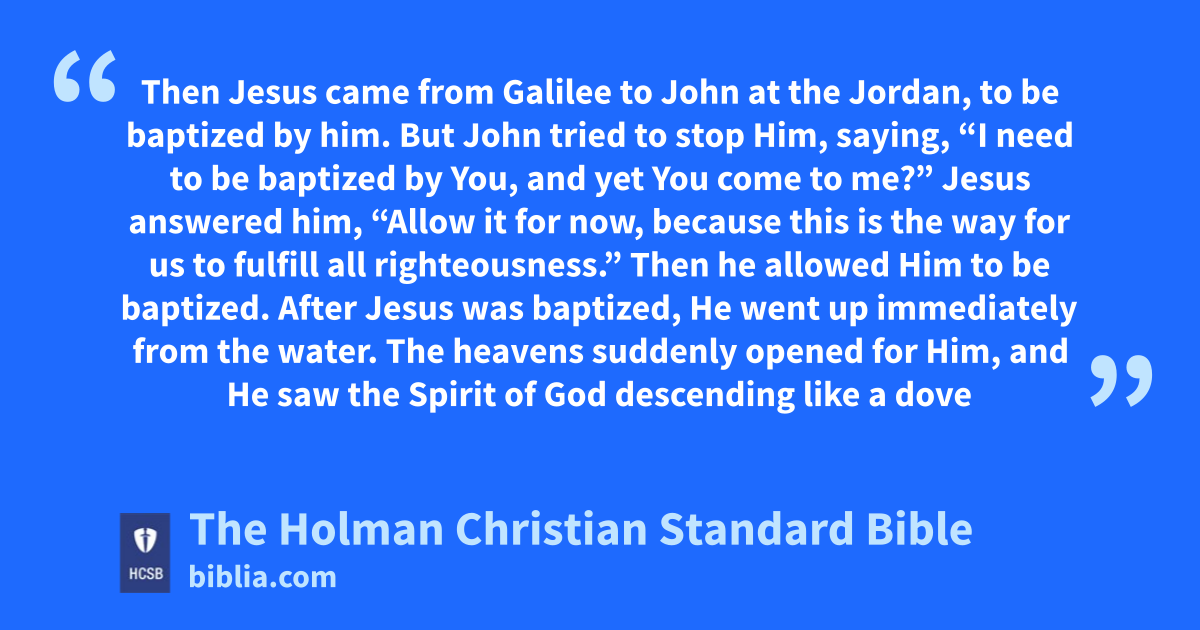 13 Then Jesus came from Galilee to John at the Jordan, to be baptized by him. d 14 But John tried to stop Him, saying, “I need to be baptized by You, and yet You come to me?”