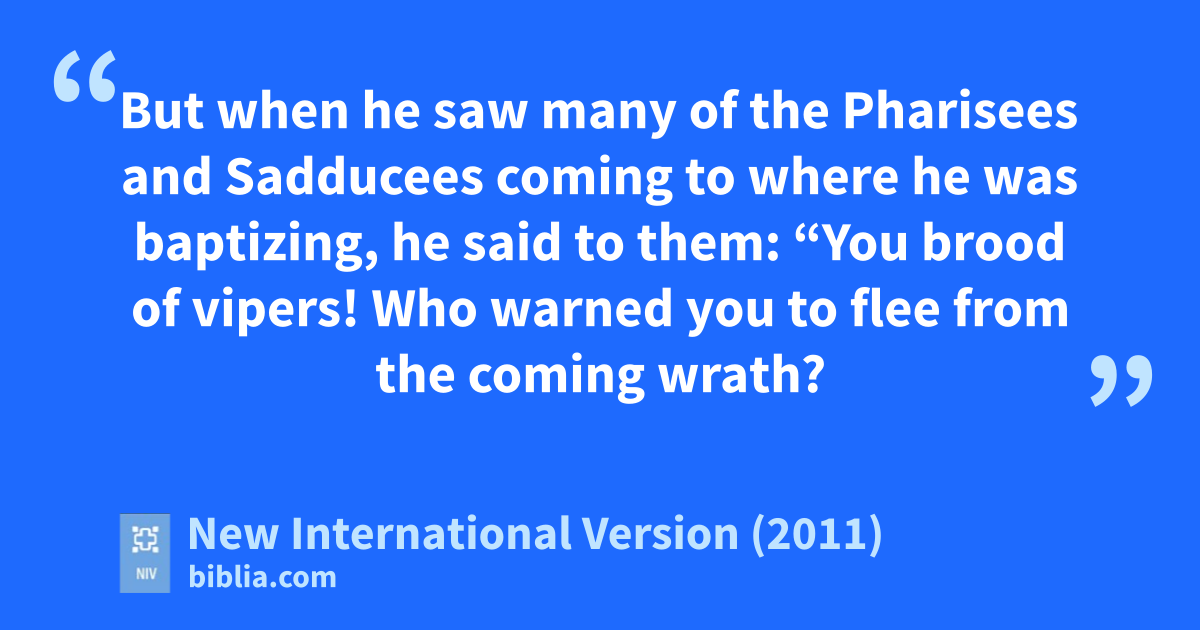 7 But when he saw many of the Pharisees and Sadducees coming to where he was baptizing, he said to them: “You brood of vipers!g Who warned you to flee from the coming wrath?h 8 Produce fruit in keeping with repentance.i 9 And do not think you can say to yourselves, ‘We have Abraham as our father.’j I tell you that out of these stones God can raise up children for Abraham. 10 The ax is already at the root of the trees, and every tree that does not produce good fruit will be cut down and thrown into the fire.k