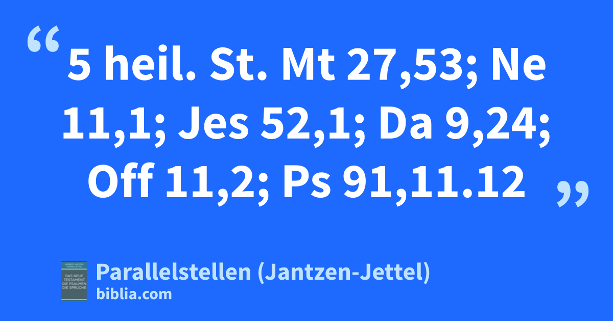 5 heil. St. Mt 27,53; Ne 11,1; Jes 52,1; Da 9,24; Off 11,2; Ps 91,11.12