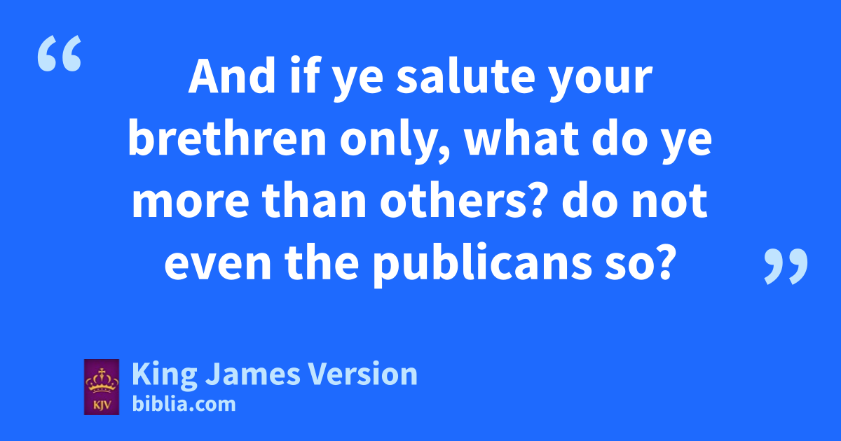 43 Ye have heard that it hath been said, hThou shalt love thy neighbour, and ihate thine enemy. 44 But I say unto you, jLove your enemies, bless them that curse you, do good to them that hate you, and kpray for them which despitefully use you, and persecute you; 45 That ye may be the children of your Father which is in heaven: for lhe maketh his sun to rise on the evil and on the good, and sendeth rain on the just and on the unjust. 46 mFor if ye love them which love you, what reward have ye? do not even mmthe publicans the same? 47 And if ye salute your brethren only, what do ye more than others? do not even mmthe publicans so? 48 nBe ye therefore perfect, even oas your Father which is in heaven is perfect.