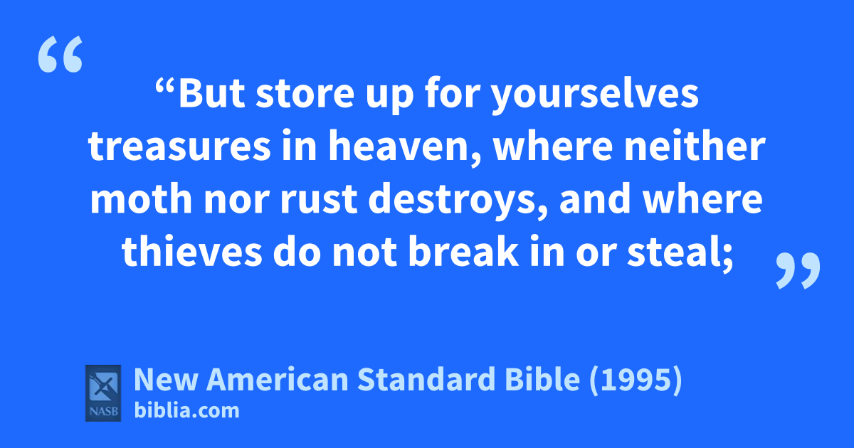 20 “But store up for yourselves atreasures in heaven, where neither moth nor rust destroys, and where thieves do not break in or steal;