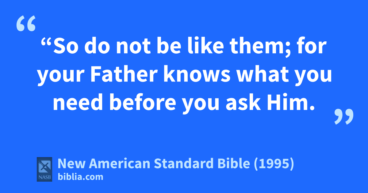 8 “So do not be like them; for ayour Father knows what you need before you ask Him.