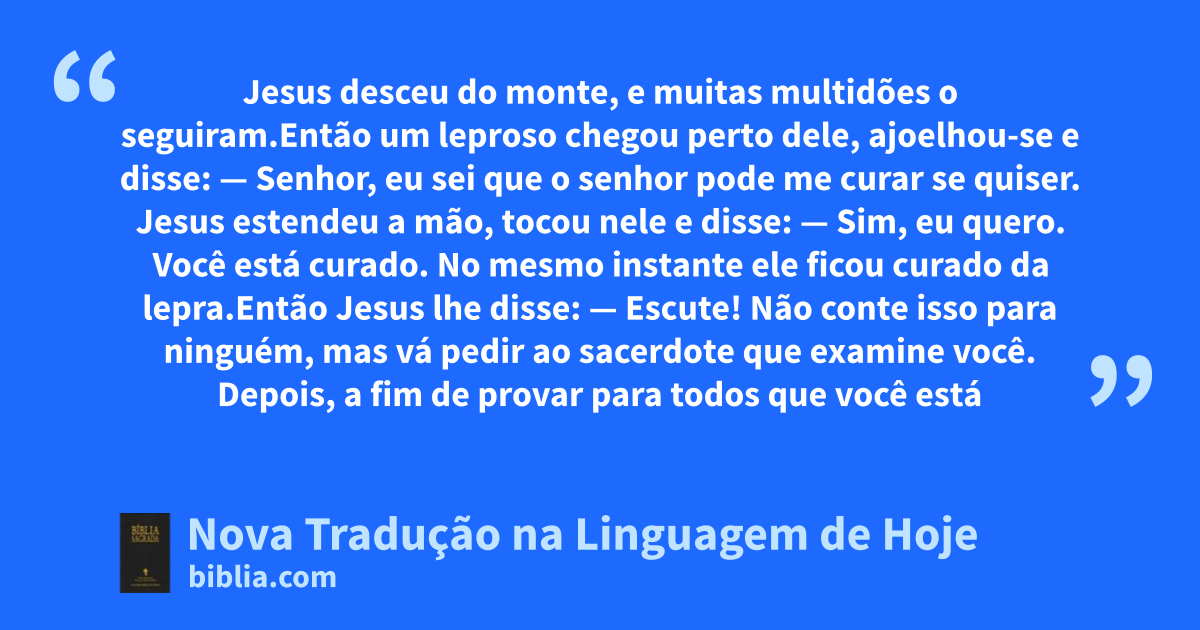 1 Jesus desceu do monte, e muitas multidões o seguiram. 2 Então um leproso chegou perto dele, ajoelhou-se e disse: