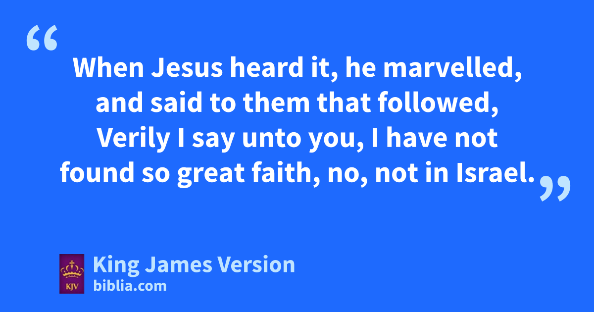5 eAnd when Jesus was entered into Capernaum, there came unto him a centurion, beseeching him, 6 And saying, Lord, my servant nlieth at home sick of the palsy, grievously tormented. 7 And Jesus saith unto him, I will come and heal him. 8 The centurion answered and said, Lord, fI am not worthy that thou shouldest come under my roof: but ffspeak the word only, and my servant shall be healed. 9 For I am a man under authority, having soldiers under me: and I say to this man, Go, and he goeth; and to another, Come, and he cometh; and to my servant, Do this, and he doeth it. 10 When Jesus heard it, he marvelled, and said to them that followed, Verily I say unto you, gI have not found so great faith, no, not in Israel. 11 And I say unto you, That hmany shall come from the east and west, and hhshall sit down with Abraham, and Isaac, and Jacob, in the kingdom of heaven. 12 But ithe children of the kingdom jshall be cast out into outer darkness: kthere shall be weeping and gnashing of teeth. 13 And Jesus said unto the centurion, Go thy way; and as thou hast believed, so be it done unto thee. And his servant was healed in the selfsame hour.