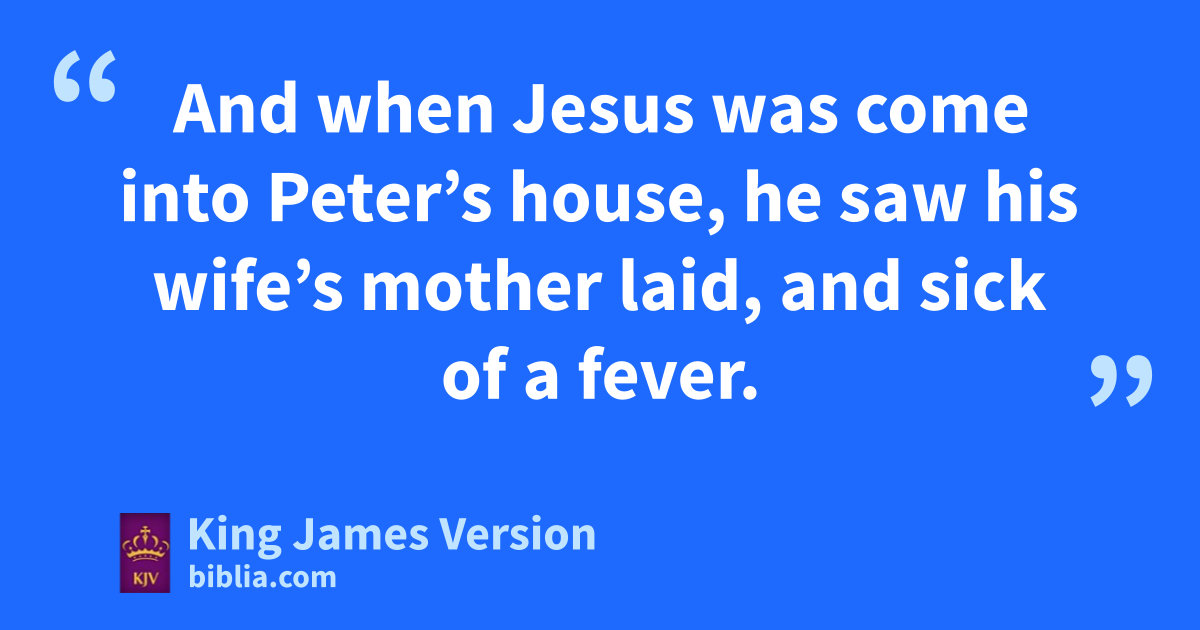 14 lAnd when Jesus was come into Peter’s house, he saw mhis wife’s mother nlaid, and sick of a fever. 15 And he bbtouched her hand, and the fever left her: and she arose, and ministered unto them. 16 When the even was come, they brought unto him many that were opossessed with devils: and he cast out the spirits with his word, and healed all that were sick: 17 That it might be fulfilled which was spoken by Esaias the prophet, saying, pHimself took our infirmities, and bare our sicknesses.