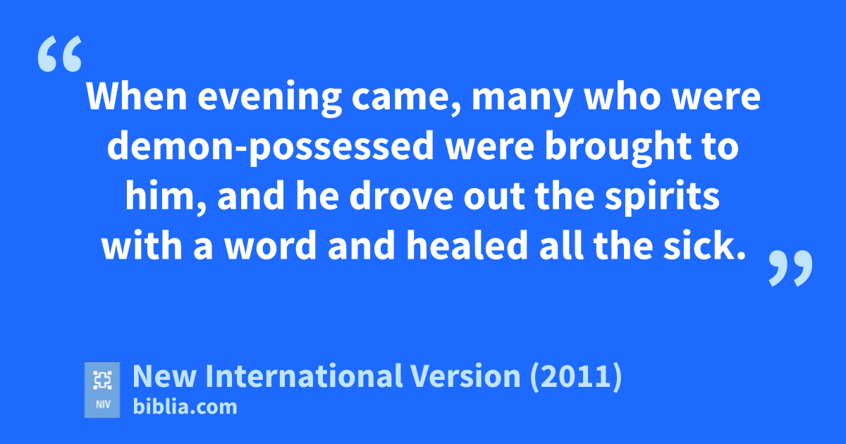 16 When evening came, many who were demon-possessed were brought to him, and he drove out the spirits with a word and healed all the sick.y 17 This was to fulfillz what was spoken through the prophet Isaiah: