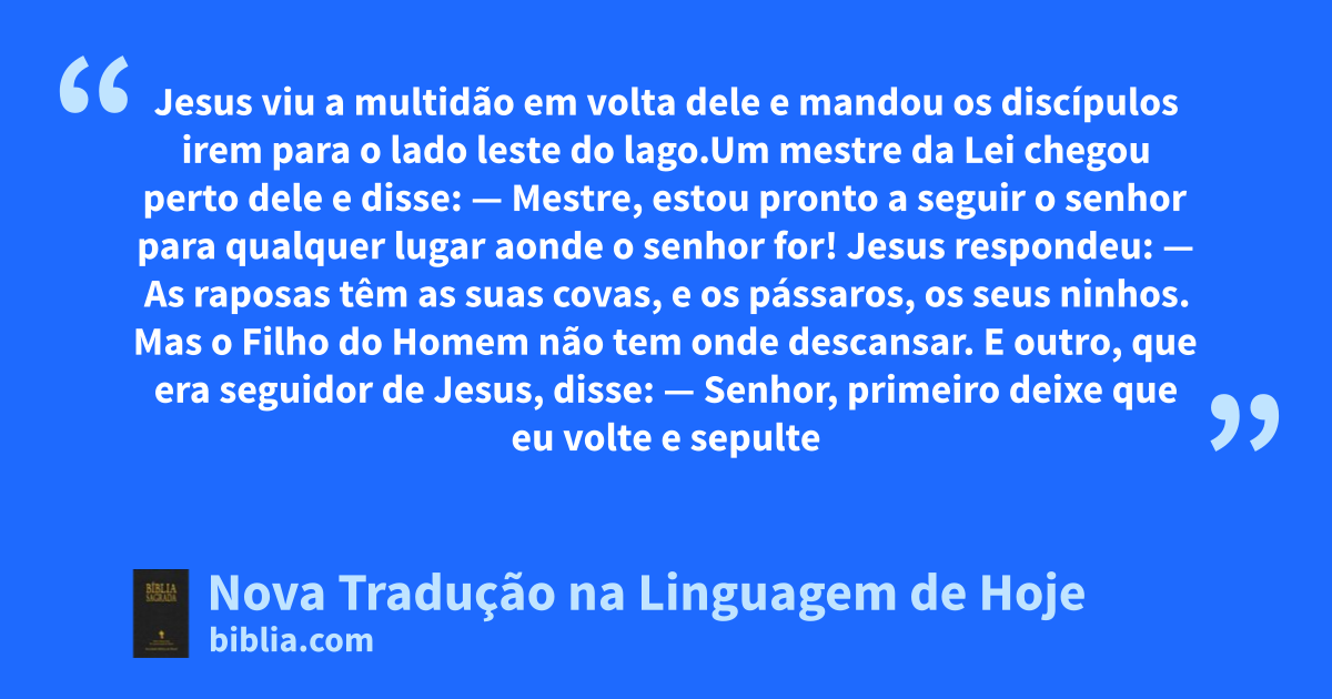 18 Jesus viu a multidão em volta dele e mandou os discípulos irem para o lado leste do lago.19 Um * mestre da Lei chegou perto dele e disse: