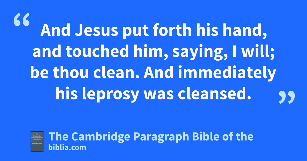 VIII. When he was come down from the mountain, great multitudes followed him. 2 aAnd behold, there came a leper and bworshipped him, saying, Lord, if thou wilt, thou canst make me clean. 3 And Jesus put forth his hand, and bbtouched him, saying, I will; be thou clean. And immediately his leprosy was cleansed. 4 And Jesus saith unto him, cSee thou tell no man; but go thy way, shew thyself to the priest, and offer the gift that dMoses commanded ddfor a testimony unto them.