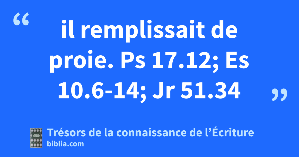 il remplissait de proie. Ps 17.12; Es 10.6-14; Jr 51.34