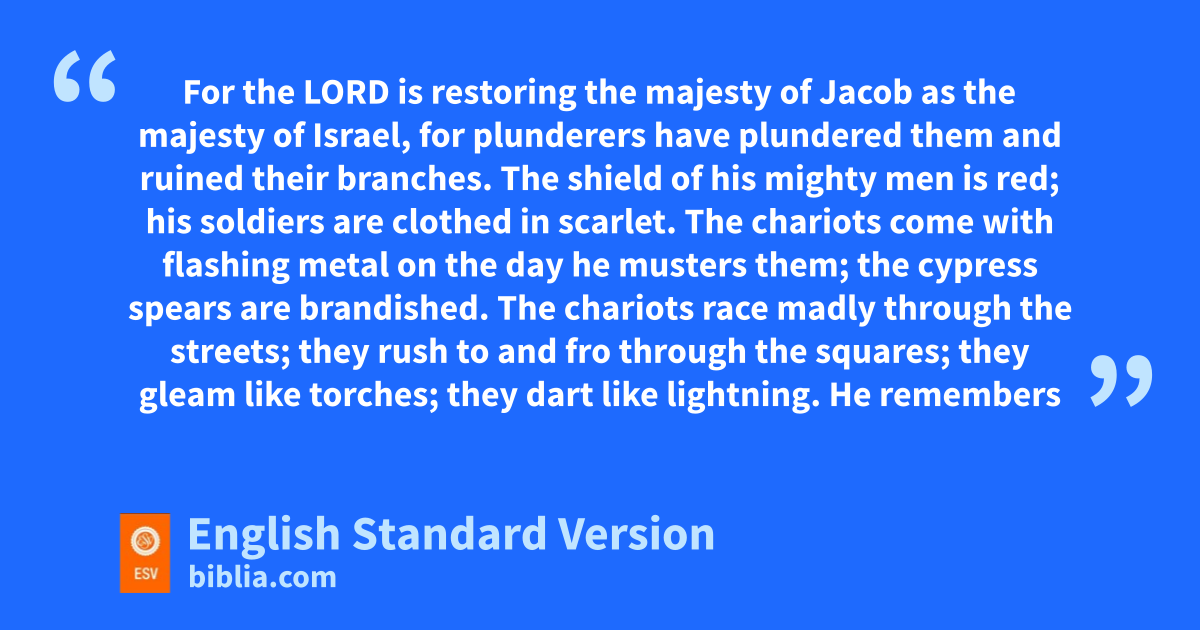 13 mBehold, I am against you, declares the Lord of hosts, and nI will burn your6 chariots in smoke, and the sword shall devour your young lions. I will cut off your prey from the earth, and othe voice of your messengers shall no longer be heard.