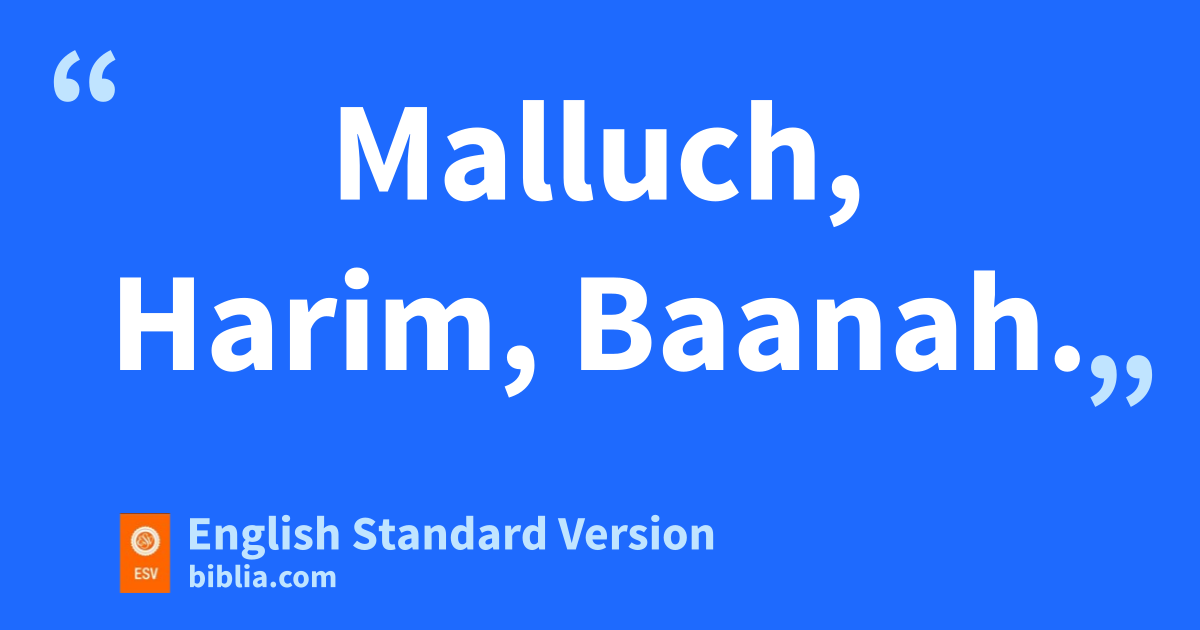 10 1 e“On the seals are the names of2 Nehemiah fthe governor, gthe son of Hacaliah, Zedekiah, 2 hSeraiah, Azariah, Jeremiah, 3 Pashhur, Amariah, Malchijah, 4 iHattush, Shebaniah, Malluch, 5 Harim, Meremoth, Obadiah, 6 Daniel, Ginnethon, Baruch, 7 Meshullam, Abijah, Mijamin, 8 Maaziah, Bilgai, Shemaiah; these are the priests. 9 And the Levites: jJeshua the son of Azaniah, Binnui of the sons of kHenadad, Kadmiel; 10 and their brothers, Shebaniah, Hodiah, Kelita, Pelaiah, Hanan, 11 Mica, Rehob, Hashabiah, 12 Zaccur, Sherebiah, Shebaniah, 13 Hodiah, Bani, Beninu. 14 The chiefs of the people: lParosh, Pahath-moab, Elam, Zattu, Bani, 15 Bunni, Azgad, Bebai, 16 Adonijah, Bigvai, Adin, 17 Ater, Hezekiah, Azzur, 18 Hodiah, Hashum, Bezai, 19 Hariph, Anathoth, Nebai, 20 Magpiash, Meshullam, Hezir, 21 Meshezabel, Zadok, Jaddua, 22 Pelatiah, Hanan, Anaiah, 23 Hoshea, Hananiah, Hasshub, 24 Hallohesh, Pilha, Shobek, 25 Rehum, Hashabnah, Maaseiah, 26 Ahiah, Hanan, Anan, 27 Malluch, Harim, Baanah.
