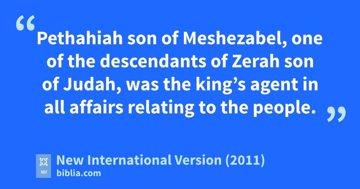 24 Pethahiah son of Meshezabel, one of the descendants of Zerahb son of Judah, was the king’s agent in all affairs relating to the people.