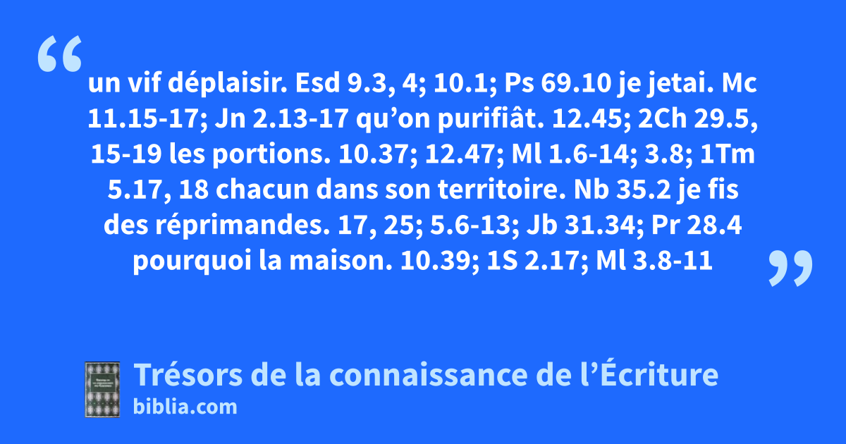 un vif déplaisir. Esd 9.3, 4; 10.1; Ps 69.10 je jetai. Mc 11.15-17; Jn 2.13-17