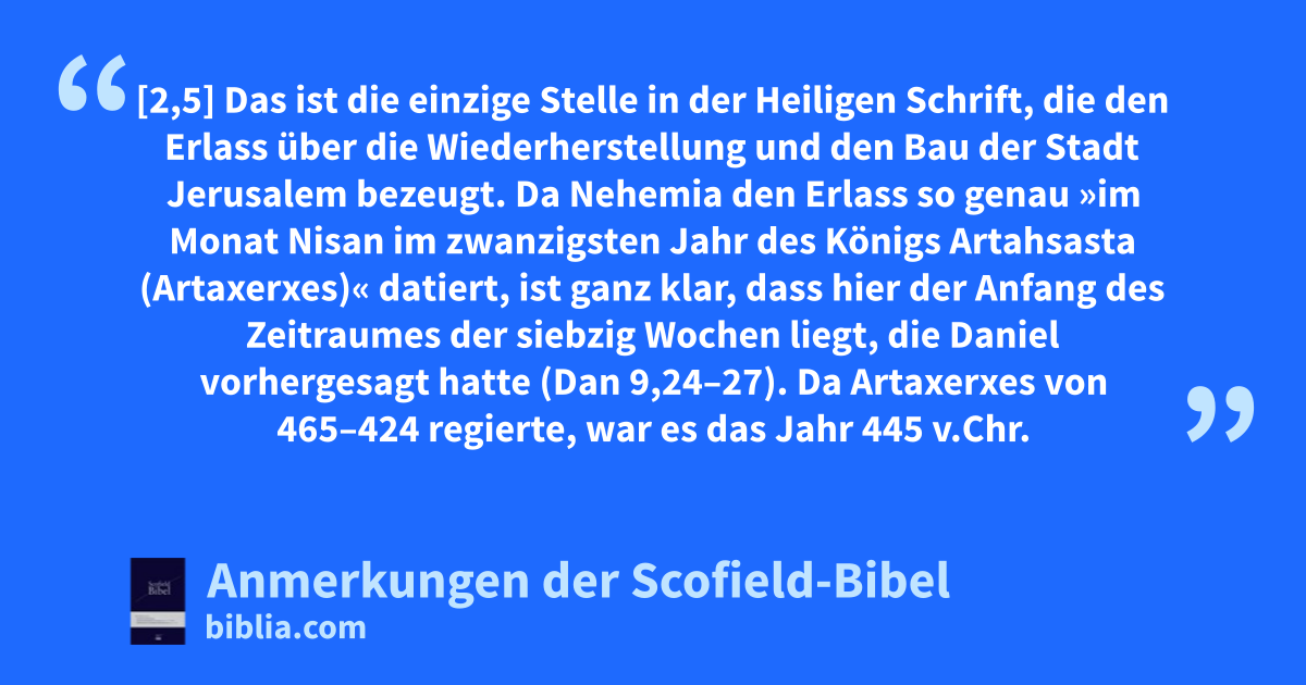 I. Nehemia erhält von Artaxerxes (Artahsasta) die Erlaubnis, nach Jerusalem zu reisen (445 v.Chr.), 1,1–2,8