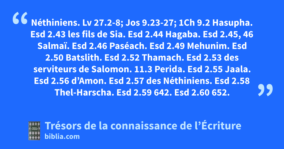 Néthiniens. Lv 27.2-8; Jos 9.23-27; 1Ch 9.2 Hasupha. Esd 2.43