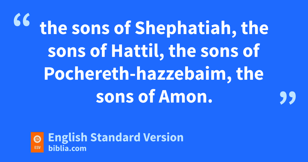 57 The sons of Solomon’s servants: the sons of Sotai, the sons of Sophereth, the sons of lPerida, 58 the sons of Jaala, the sons of Darkon, the sons of Giddel, 59 the sons of Shephatiah, the sons of Hattil, the sons of Pochereth-hazzebaim, the sons of mAmon.