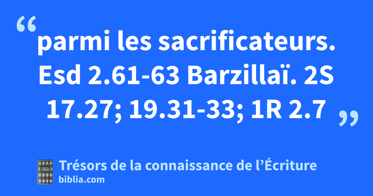 parmi les sacrificateurs. Esd 2.61-63 Barzillaï. 2S 17.27; 19.31-33; 1R 2.7